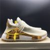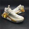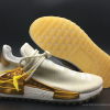 Limited with 300 pairs of Adidas Pharrell NMD HU China Pack Happy Gold were exclusively available in China. This pair features white “HAPPY” lettings on its right shoe and Chinese characters on the left. Also, it has EVA insert overlays, trail rubber outsoles, and... a lacing cage system. Its gorgeous and appealing touches of white and happy gold with boost midsoles made it more interesting. Luckily today, a pair of these Adidas Pharrell NMD HU China Pack Happy sneakers is obtainable by your feet.