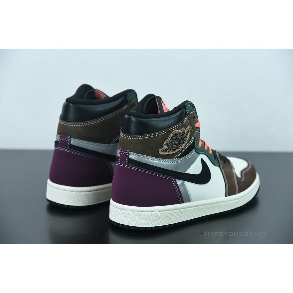 Air Jordan 1 Retro High OG ‘Hand Crafted’ brings out striking eclectic colors for your feet. It showcases all-white leather upper bases with appealing nubuck accents and overlays. It has... brown tones on the forefoot, side panel, and ankle collars. These sneakers also offer green eye stays, reflective silver trim on its quarter panel and heel, and magenta tone on heels. Air Jordan 1 Retro High OG ‘Hand Crafted’ is completed with black Nike Swoosh, black Jordan Wings, white midsoles, and black rubber outsoles. ——————————————————————————-