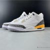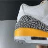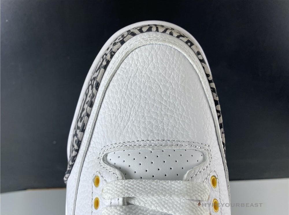 A chic and fancy clean white sneakers are the main features of Air Jordan 3 Laser Orange. It has white leather bases with additional plain orange and leopard accents. This contemporary pair of sneakers includes white tumbled leather with elephant print overlays on the... forefeet and lateral sides. Air Jordan 3 Retro Laser Orange also highlights orange elements just above the noticeable Air technology heel. Completing its unique and elegant style is the embossed Jumpman logo on the molded heel panel and another Jumpman branding on the tongue. Both reveal the sneaker’s classic look.