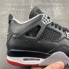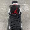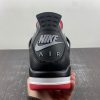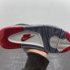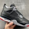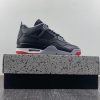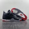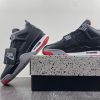 The Air Jordan 4 Retro ‘Bred Reimagined’ reimagines the iconic silhouette by featuring a black leather upper instead of the original 1989 nubuck material. Retaining heritage elements, the design includes quarter panel netting, ...grey molded eyelets, and Nike Air branding on the heel tab. The tongue showcases a woven Flight tag with a red Jumpman logo. This mid-top shoe rests on a lightweight polyurethane midsole with encapsulated Air-sole cushioning in the forefoot and an exposed Air unit in the heel. The pre-distressed rubber outsole underneath boasts a herringbone traction pattern for exceptional grip.