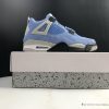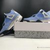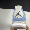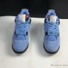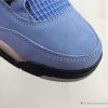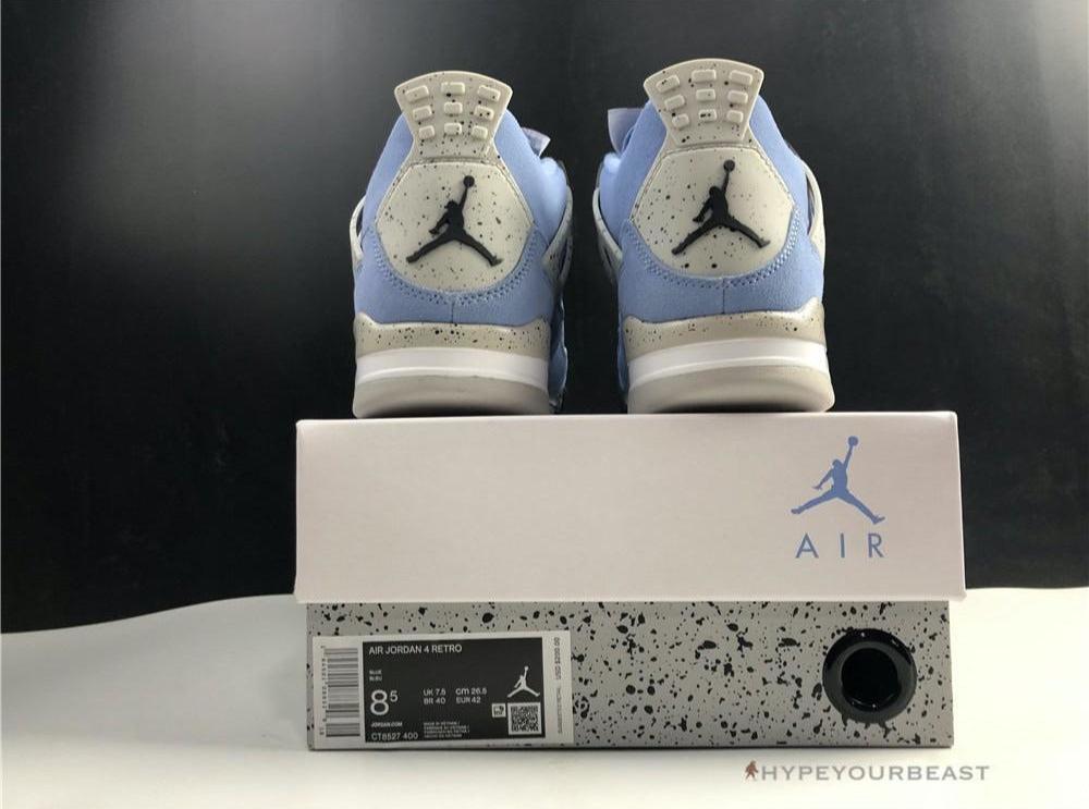 The iconic Air Jordan 4 Retro ‘University Blue’ gets a fresh update with a sleek suede upper in a vibrant hue that pays homage to Michael Jordan’s... alma mater, UNC. The striking blue is perfectly complemented by the speckled grey finish on the sneaker’s wings and back heel, adorned with a raised black Jumpman icon. Spot the secondary Jumpman branding on the woven tongue tag, adding a stylish touch reminiscent of the jock tag found on Jordan jerseys.