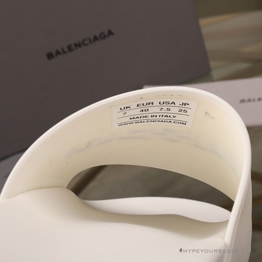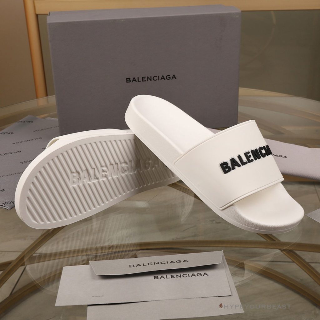 All-white slides are showcased through Balenciaga Slides White. This footwear presents white-theme slippers made from premium rubber materials that ensure a smooth performance anywhere you go. These slides also add captivating black accents w...ith the embossed Balenciaga logo. You can see this black logo on its strap, making a striking style on the footwear. ——————————————————————————-Owning a pair of Balenciaga Slides White now and check out how it can offer a strong appeal on your feet.