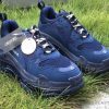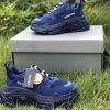 The Triple S and clear sole technology of the French brand Balenciaga has its very own navy blue pair! Balenciaga Triple S Clear Sole Navy Blue features high-class materials on upper down to soles w...hich are all in color navy blue. These running and hiking shoes also give you white accents for the logo and part of the lacing system. But most importantly, its magnificent Triple S soles are showcasing ridged rubber sole all in light to dark shades of navy blue. Wear this Balenciaga Triple S Clear Sole Navy Blue comfortable with any outfit while conveniently enjoying the pull-on tab features on tongue and heel. ——————————————————————————-Upgrade your sneakers with BCG Triple S Clear Sole Navy Blue and savor its overall navy blue colorway along with its premium construction!
