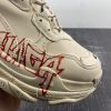 BCG Triple S Sneaker DIY Metal features DIY metal artwork printed on cowskin with a worn-out effect. It includes a complex 3-layered outsole, embroidered size at the edge of the toe, embossed logo in the back, a...nd metal artwork printed on each side. The sneaker also has Triple S rubber branding on the tongue, 2 laces loops (1 functional), a lacing system with 12 fabric eyelets, bicolor laces reminiscent of hiking boots, an extra pair of laces, and back and tongue pull-on tabs.