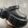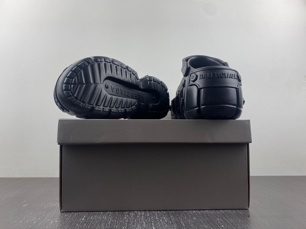 Crocs X BCG HardCrocs Mule Black mules embody the avant-garde essence of Balenciaga’s... accessory designs. These platform mules, a result of the collaboration between Crocs and Balenciaga, feature distinctive perforated accents that add a touch of uniqueness. The black hue, intricate perforated detailing, rounded toe, elegant slingback strap, and the elevated platform sole collectively make these mules stand out as a stylish and fashion-forward footwear choice.Manufacturer Sku | 687397 W1S8N 1081 |