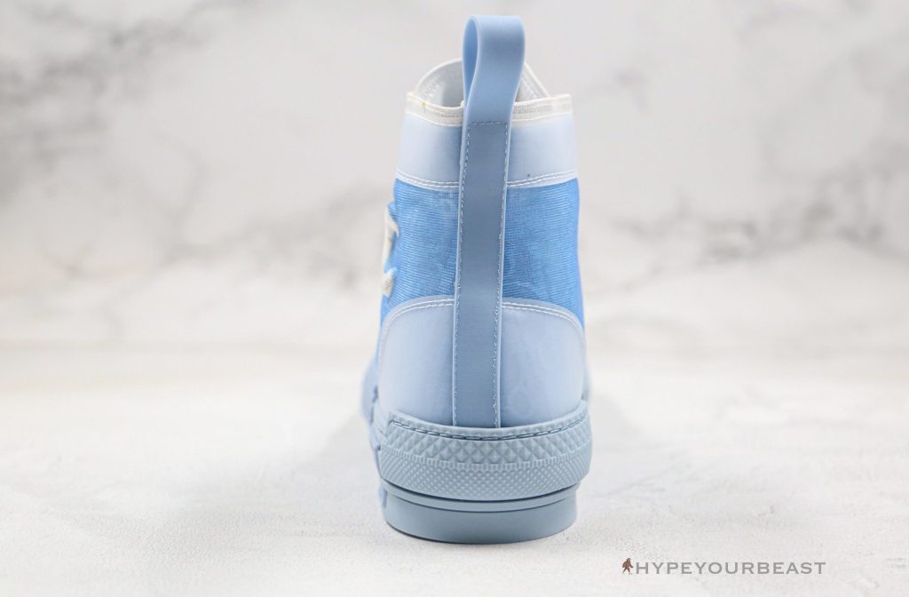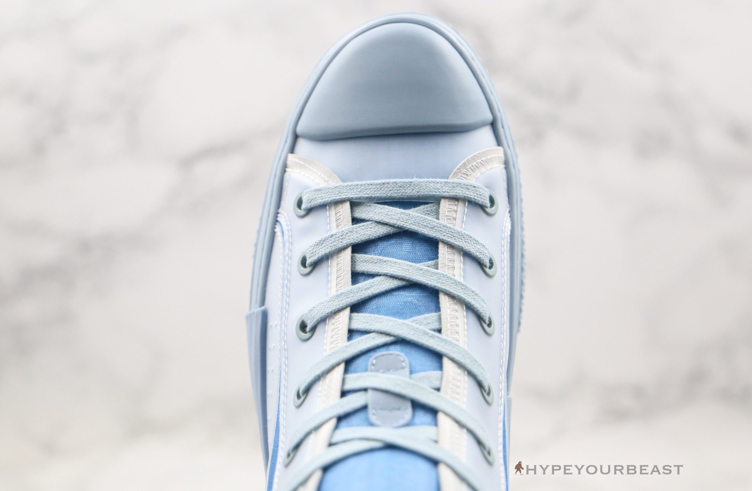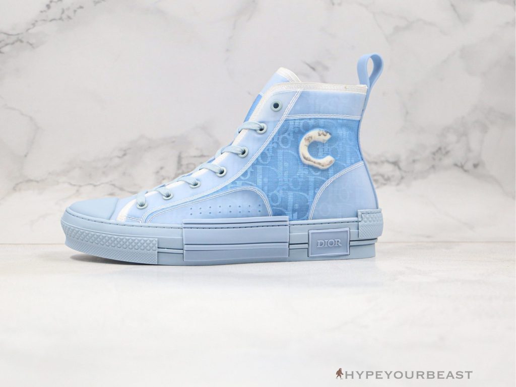 The stunning and luxurious feeling is the captivating effect of the Dior 23 Oblique Light Blue. These sneakers were constructed through the terrific collaboration of Dior x Daniel Arsham as they decided to use light blue oblique canvas for the upper of shoes.... But then, it also showcases tonal lace front and tonal rubber toe cap to maintain its strong shape. Besides that, Dior B23 High Daniel Arsham Blue even carries white leather trim to give highlights. It also reveals Dior labels with a white large D logo on the midfoot. To complete the look, the sneakers own light blue rubber soles with a Dior patch on the heel.