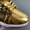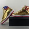 The exclusive “Donald Trump Never Surrender Shoes” is a limited collection of just 1000 pairs. Each pair is uniquely numbered, making it a coveted piece for collectors. President Trump’s pr...emier sneaker, unveiled at SneakerCon Philadelphia on February 17, 2024, embodies boldness, gold accents, and resilience – qualities synonymous with the former President. These shoes are designed for those driven individuals who embody perseverance. Adorned with a striking gold finish and the iconic ‘T’ badge, these sneakers pay homage to true Patriots. The American flag detail on the collar symbolizes freedom and bravery.