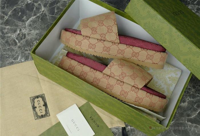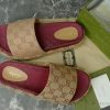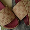 The GC Canvas Slides Sandal in Red is a classic ...design with a modern twist. The upper is made of beige canvas with the signature GG logo in red. The sole is rubber for comfort and traction. The platform heel makes it easy to walk in, and the open-toe design keeps your feet cool in warm weather. The simple design makes it versatile enough to wear with jeans or a sundress. Whether you’re headed to the beach or the park, the GC Canvas Slides Sandal in Red is a great choice for summertime style.