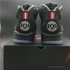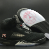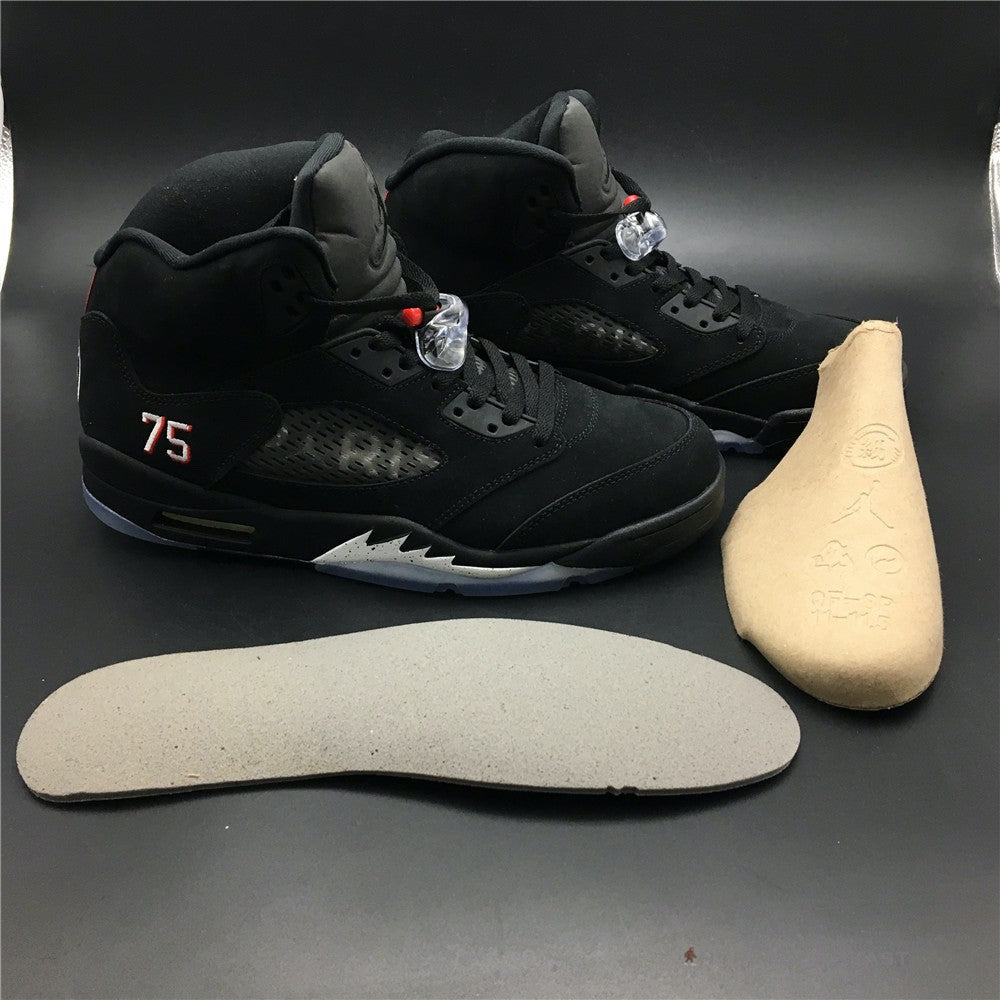 The fantastic collaboration of Jordan Brand and French professional soccer club PSG introduces an incredible pair of Air Jordan 5 Retro Paris Saint Germain. Its main colorway was inspired by the club’s uniforms, so it carries the black nubuck bases with white and ...red accents on the upper. The sneakers look to be all black-out from upper, but it also includes white and grey midsole tones with the visible Air technology features. Branding is also highlighted such as the “PARIS” text with Jumpman logo replacing the “A”, “75” embroidery on the sides, PSG x Air Jordan logo at the heels, and “Ici C’est” text inside each tongue. Air Jordan 5 Retro PSG indeed showcases all the captivating features of the two iconic brands.