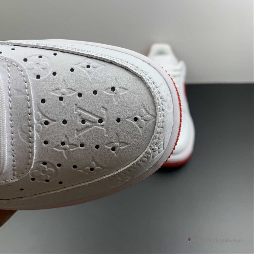 Grab Nike Air Force 1 Low ‘LV Monogram White Red Off-White’ today if you wish to add a bit of edge to your casual and streetwear look.
