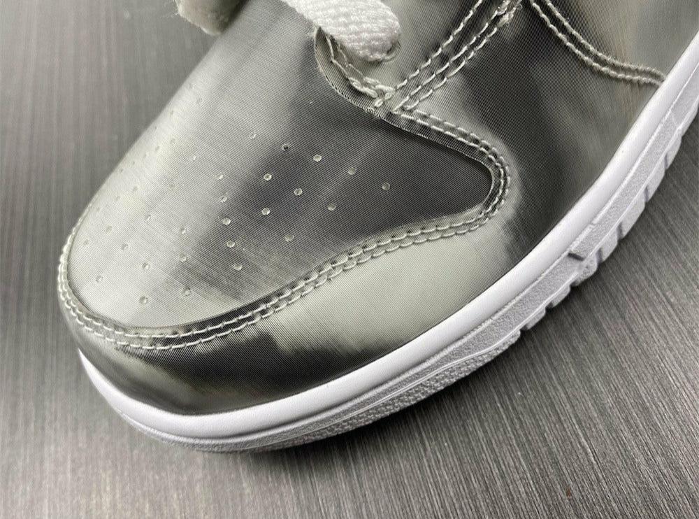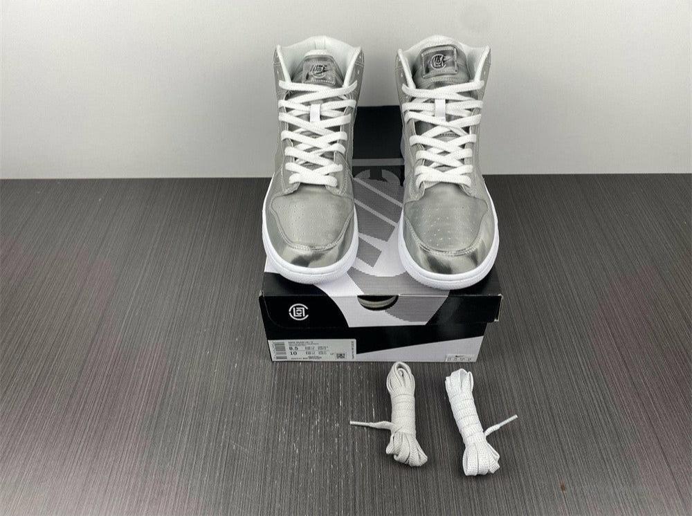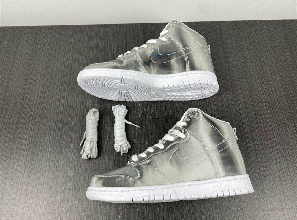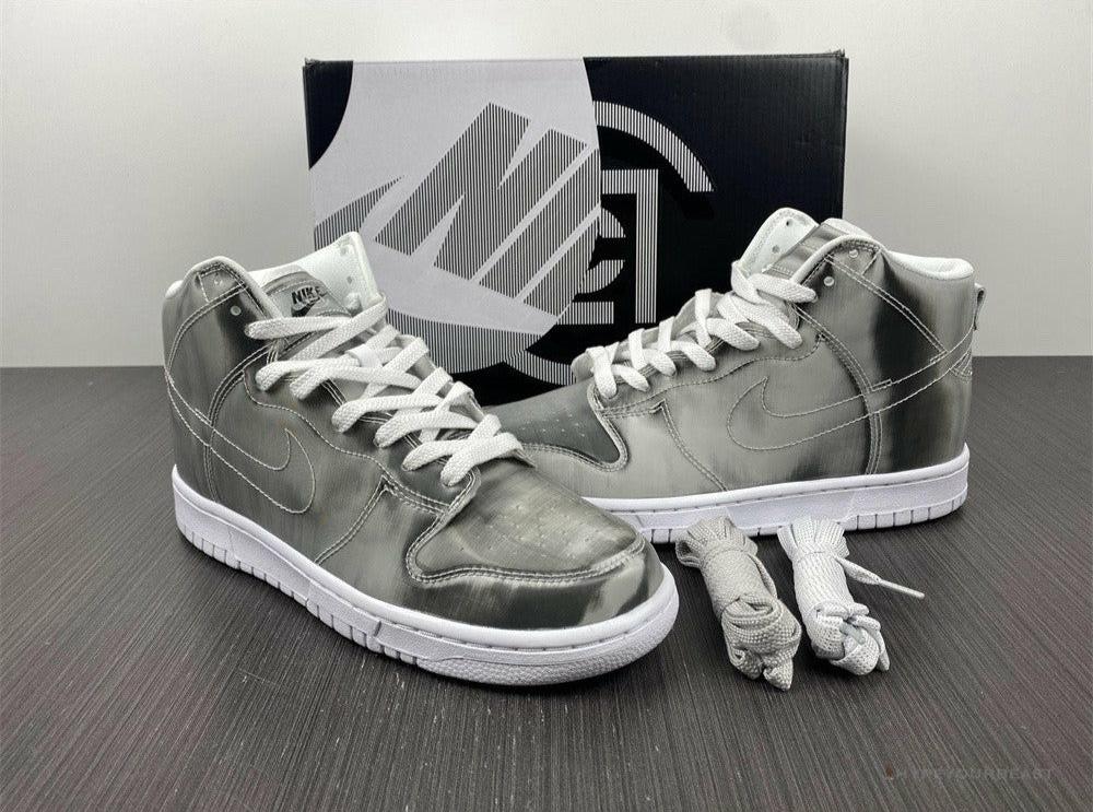 The Nike Dunk High CLOT Flux is a sneaker that pays homage to the Yin-Yang philosophy of fluidity and harmony. The shoe is constructed with an all-over lenticular material providing a metallic silver shimmer on its ex...terior. These sneakers also highlight logos in a holographic styling. Nike Dunk High ‘CLOT X FLUX’ is completed with white rubber soles. ——————————————————————————-Collect Nike Dunk High ‘CLOT X FLUX’ and see how it can indeed elevate your OOTD with its metallic colorway.