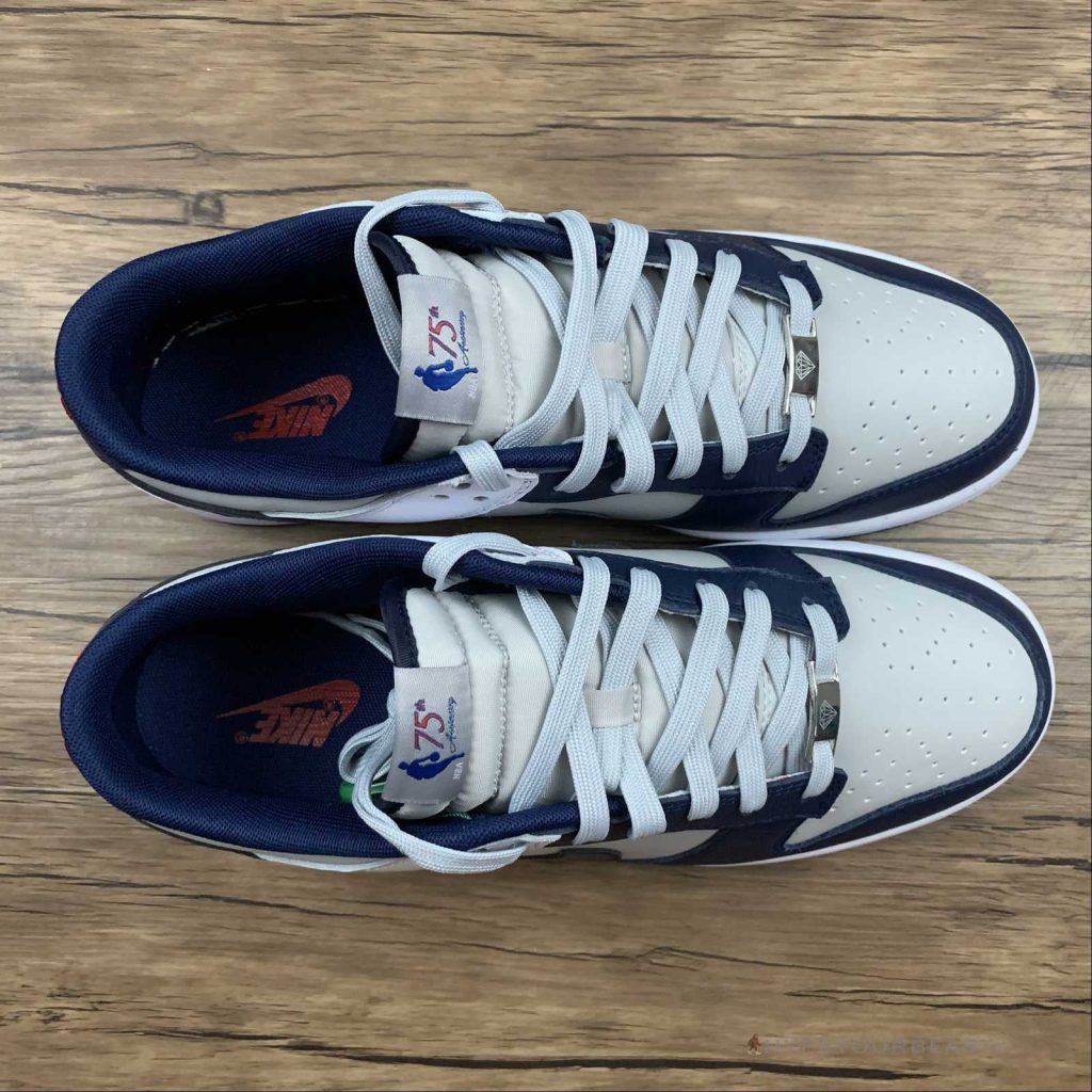 The newly released Nike Dunk Low Brooklyn Nets presents a high-fashion Royal Blue overlay leather. These kicks highlight the collaboration with NBA Brooklyn Nets with the team’s 1997 ...logo on each shoe along with pure white leather to make the logo stand out. The 75th Anniversary of the Nets is also featured on each shoe tongue with a tag. Each shoe is designed with Blue, White, Gray, and Red to feature the earlier version of the Brooklyn Nets Logo. Of course, the shoe wouldn’t be complete without the grey accounts around the shoe with a finishing touch of red outsole stitch to fully present the team! ——————————————————————————-Grab Nike Dunk Low Brooklyn Nets now and enjoy its sleeking colors and structure.