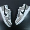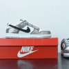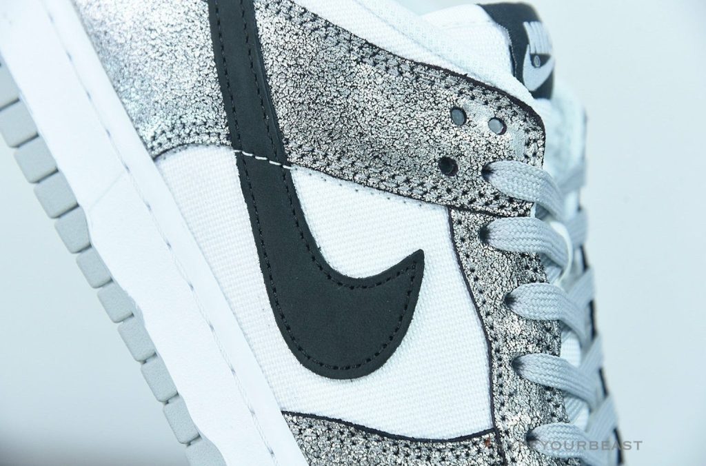 Dunk Low Shimmer departs from the standard dunk styles by using high-quality silver-tone cracked leather for layered panels that are combined with a white mesh underlay on the top. The sneaker also features a black suede Sw...oosh on the sides with matching tongue tags and a Nike logo on the heel. Nike Dunk Low ‘Shimmer’ is complemented by a white midsole and a gray rubber outsole. ——————————————————————————-