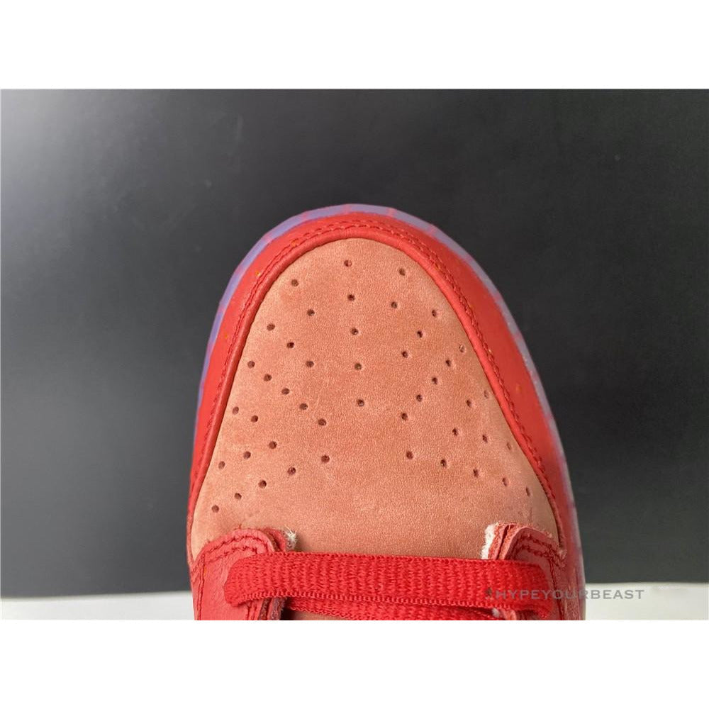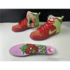 Fun and captivating strawberry design is the main highlight of artist Todd Bratrud x Nike Dunk High SB Strawberry Cough sneakers as it represents the fragrant m...arijuana strain. This pair includes the fruit’s colorway with its textured red leather toe and hairy green suede heel designs. It also showcases the huge green Nike Swoosh and red lacing system. However, the real spotlight focuses on the Strawberry Cough cartoon at the side heels which gives you an extra adorable look. To complete the Nike Dunk High SB Strawberry Cough, a translucent rubber cup sole is added to the game. Thus, you will be able to proudly present your feet with an awesome pair of fruit sneakers.  ——————————————————————————-