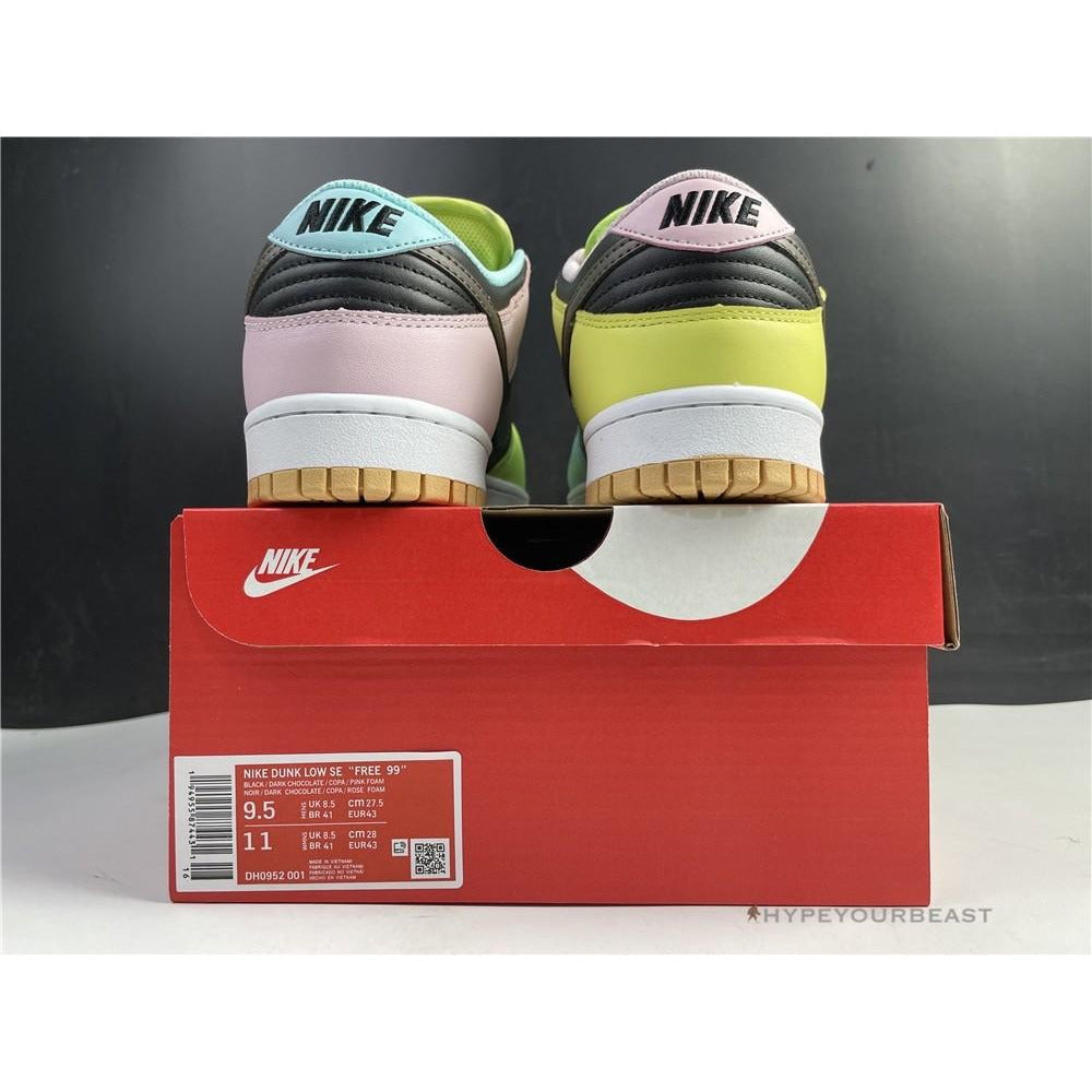 Fun colored sneakers are highlighted through Nike SB Dunk Low ‘Free 99 Black’. It owns black leather upper base material with various pastel shades overlays. These colorways include green, yellow, light blue, a...nd pink. Besides these multi-colored effect, Nike SB Dunk Low ‘Free 99 Black’ still flaunts Dark Chocolate Nike Swoosh. Grab a pair of these kicks and enjoy its aesthetic style on your feet.
