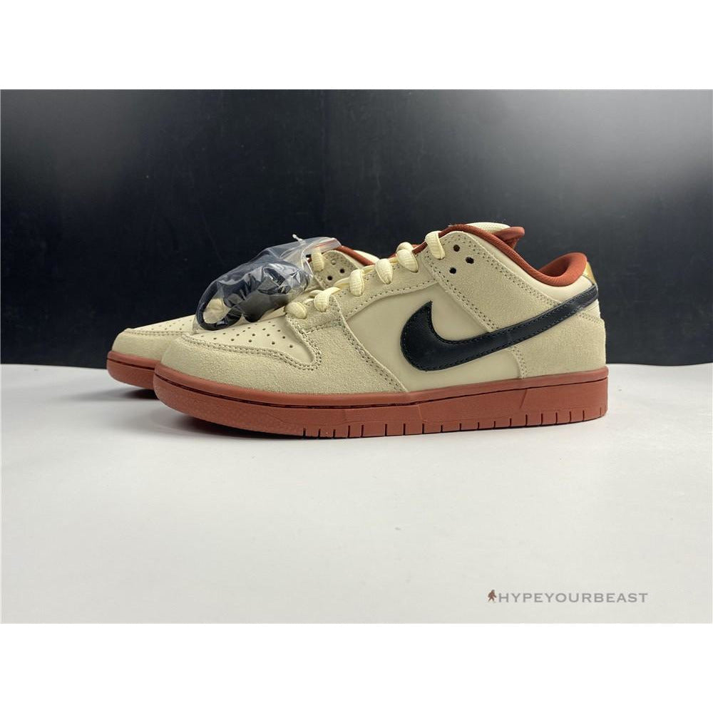 Nike SB Dunk Low Beige color gives extra vintage style on your feet. These sneakers are called Nike Dunk Low Pro Hennessy as it carries beige, black, gold, ...and maroon colorways. However, its upper only showcases beige bases and overlays. A huge black Nike Swoosh is on each side of the midfoot paired with its black laces. The sneakers include gold accenting on the heel tab highlighting the black Nike logo. To complete the Nike SB Dunk Low Hennessy, maroon interior and thick soles are used. It gives you a chance to nail the old-fashion colorway while channeling its fantastic appeal. ——————————————————————————-Upgrade your sneakers style with Nike SB Dunk Low Pro ‘Hennessy’ and embody its vintage vibe along with its classic-fitting construction!