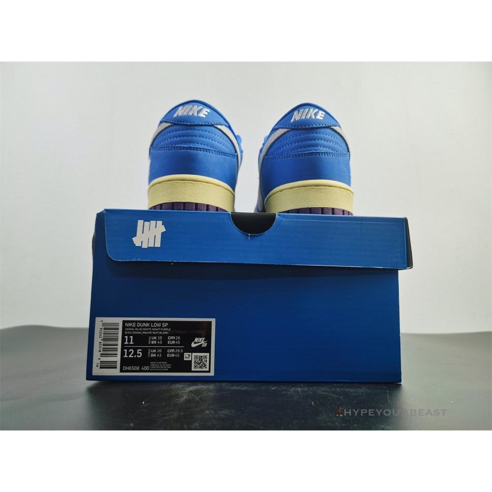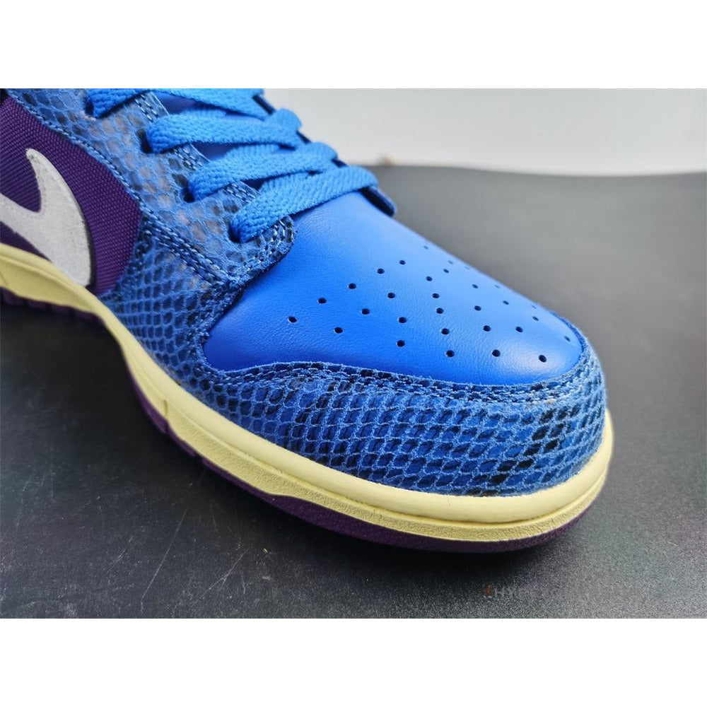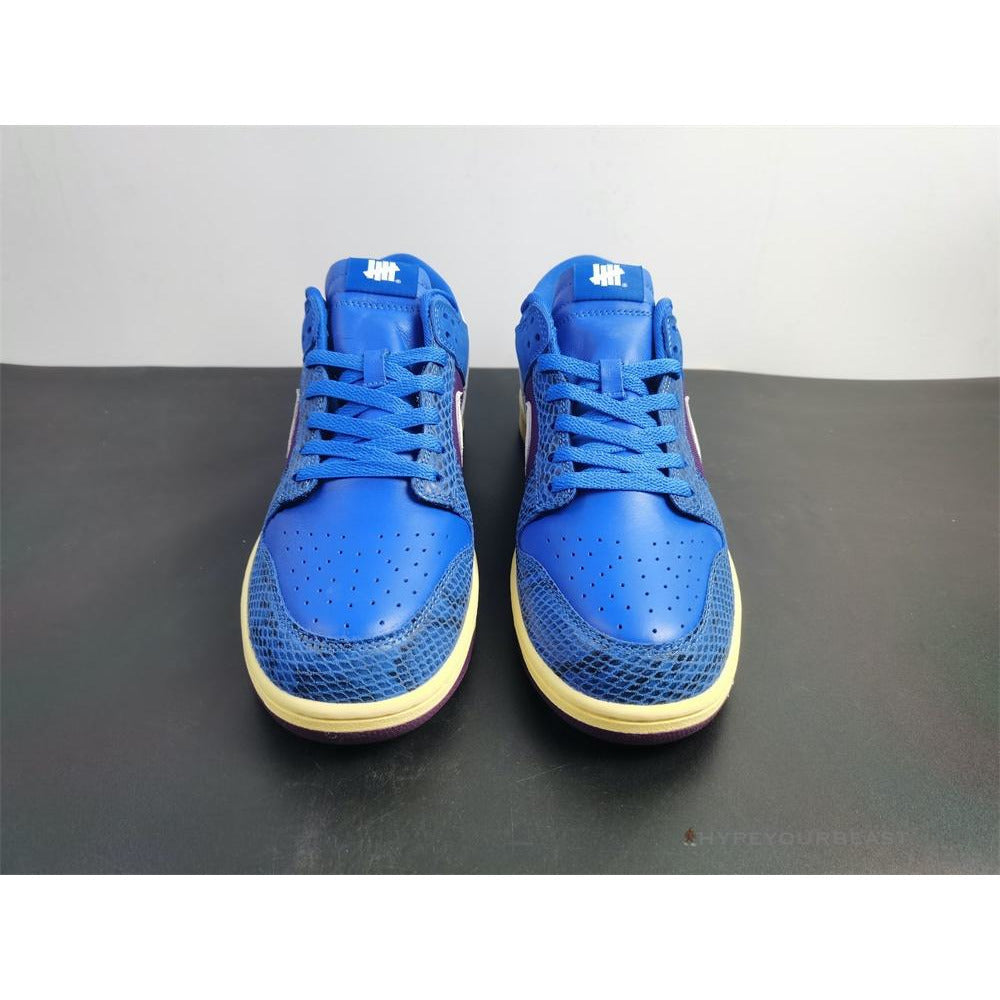 Nike Dunk Low Undefeated SP 5 On It brings you incredible accents present in the late 1990s and early 2000s. These sneakers carry fascinating colors including bright blue, purple, white,... and pale yellow tones. Its upper has a combination of blue leather and nubuck construction along with its purple textile. It even carries white Nike Swoosh in suede materials. Nike Dunk Low Undefeated SP 5 On It are completed with a cream-colored rubber midsole and violet rubber outsoles.  ——————————————————————————-
